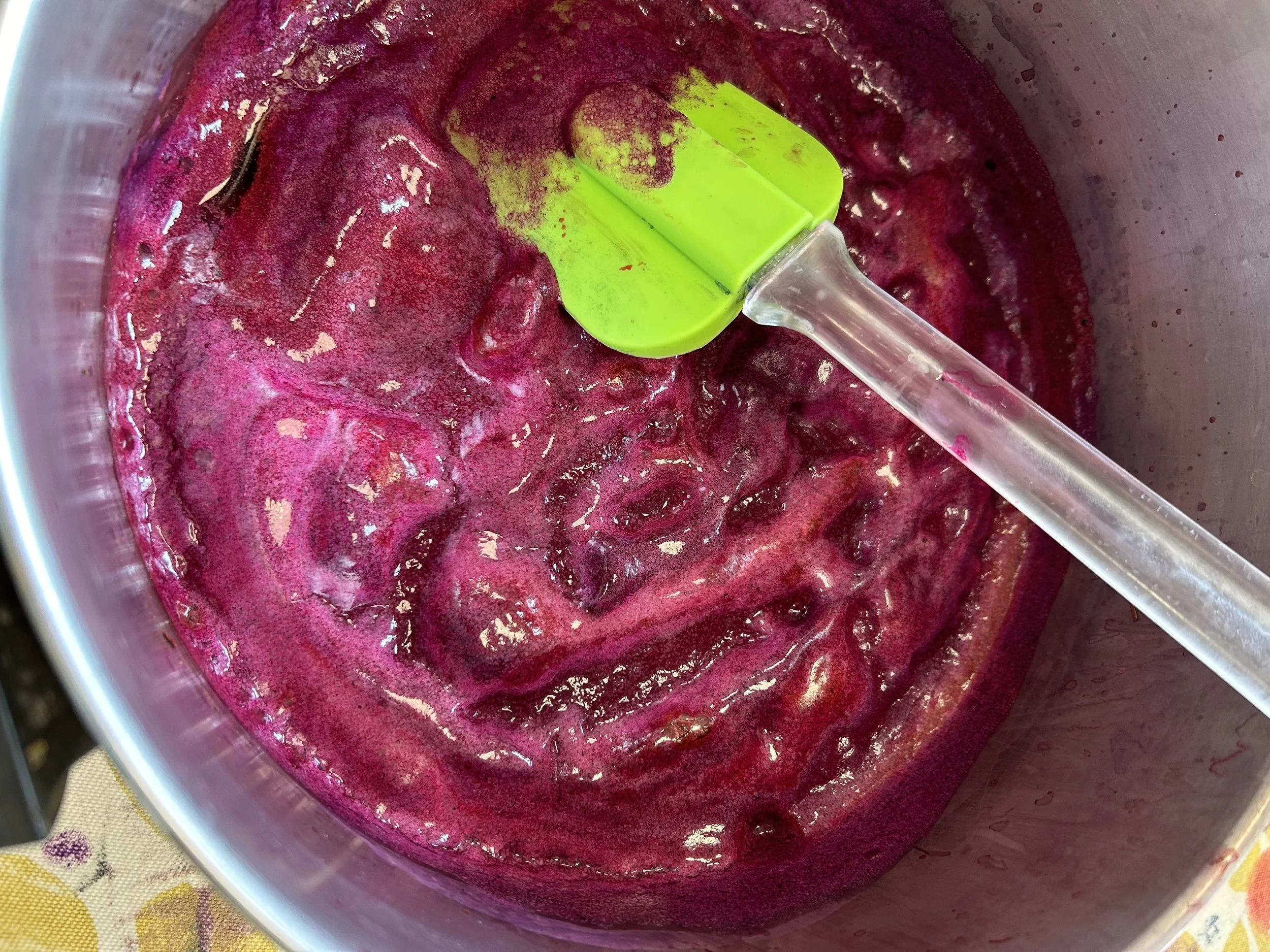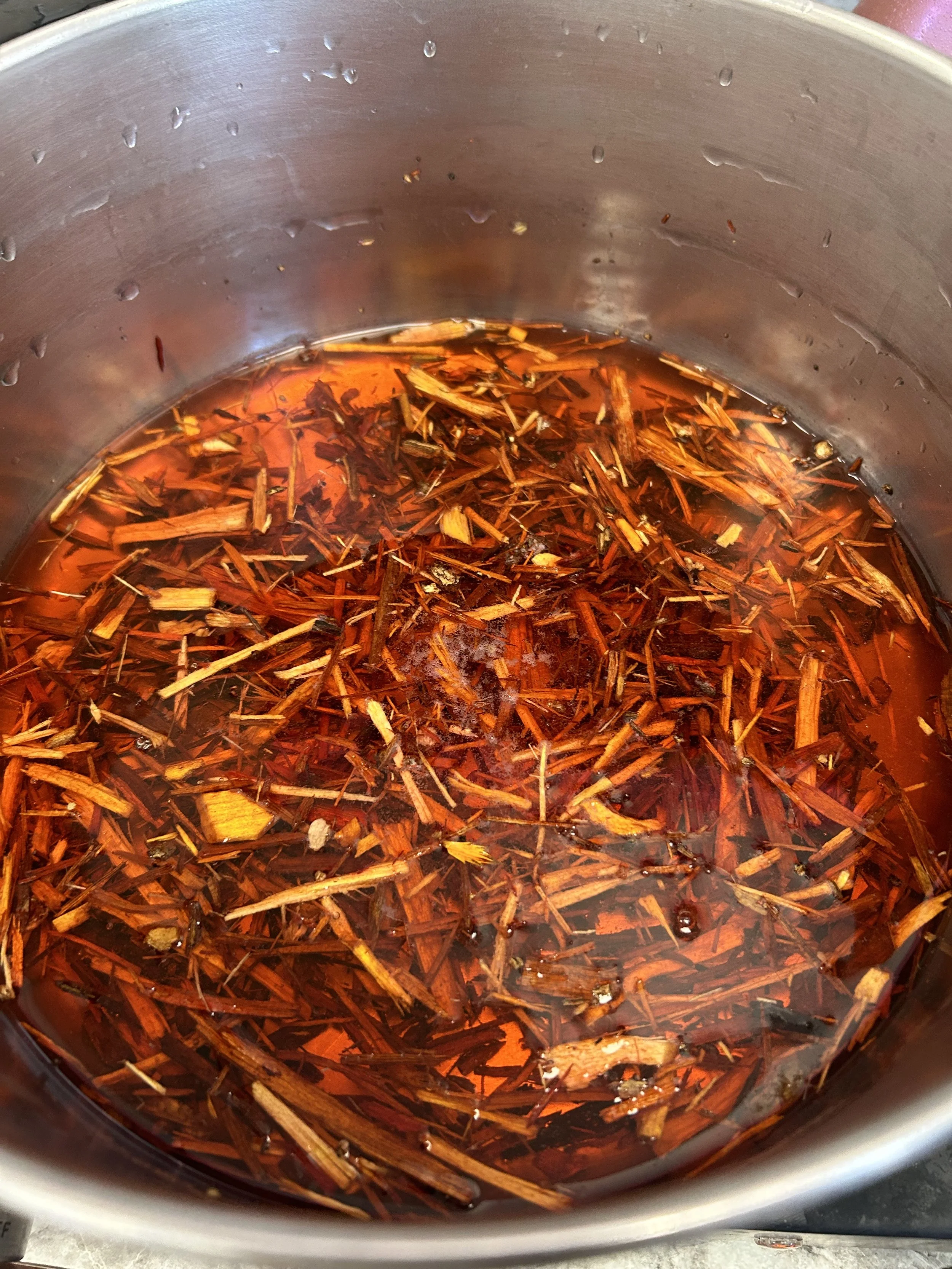 9. Once the palo de Brasil liquid is reduced, remove from heat.